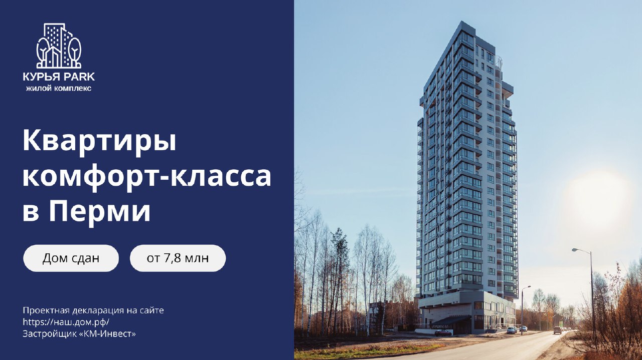 ЖК «Курья Park» – выбирайте высокий уровень комфорта!Просторные готовые квартиры с потрясающими видами: на живописную Каму и бескрайний сосновый бор всего в 10 минутах от центра Перми!
