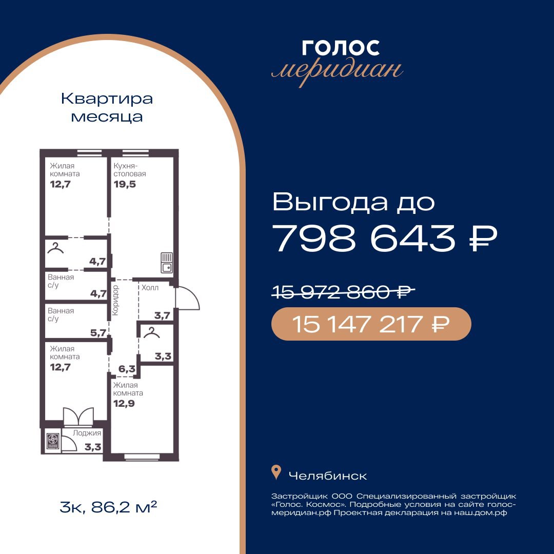 [title] => [Photo] Квартира месяца в Голос Меридиан — выгода до 799 тысяч ₽Новый проект девелопера «Групп [...]